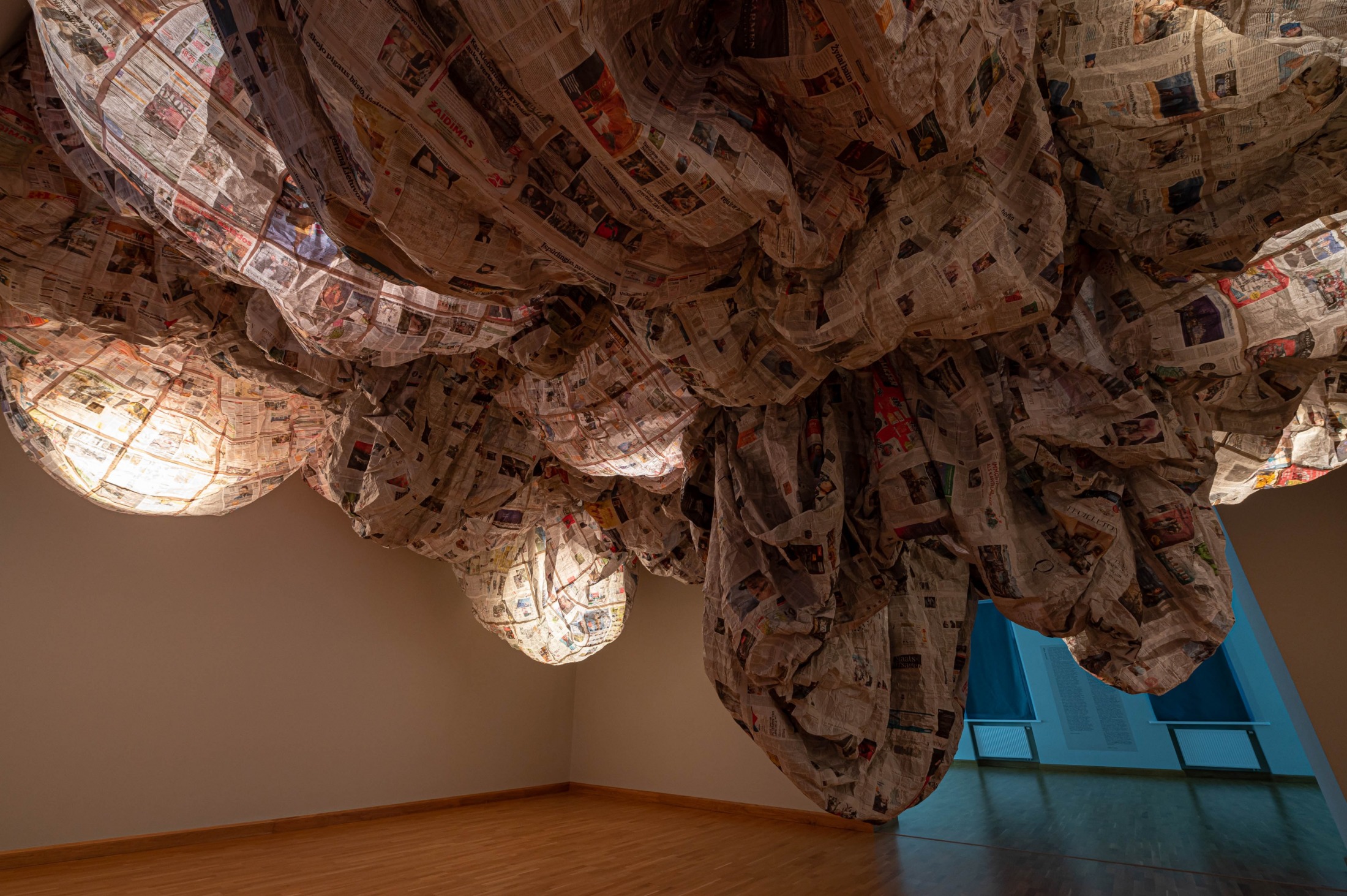 WOLKIG. Vilnius │ 2022. Rauminstallation. Zeitungspapier. 95 m².